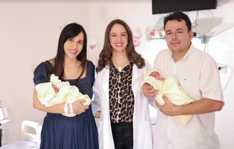As duas gêmeas e a mãe, Naiara Santos, passam bem e receberam alta na tarde desta terça-feira (11).