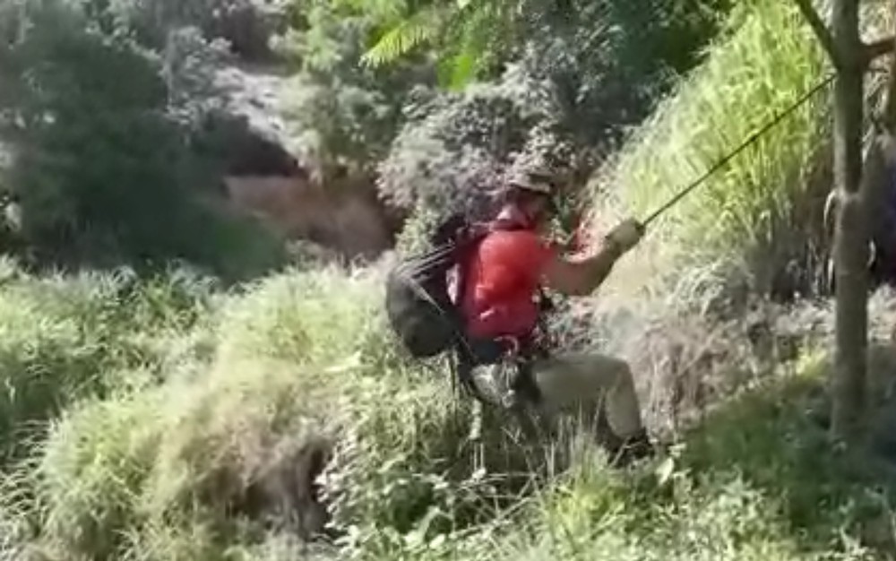 Piloto cai em despenhadeiro após saltar de parapente em serra de Jaraguá.