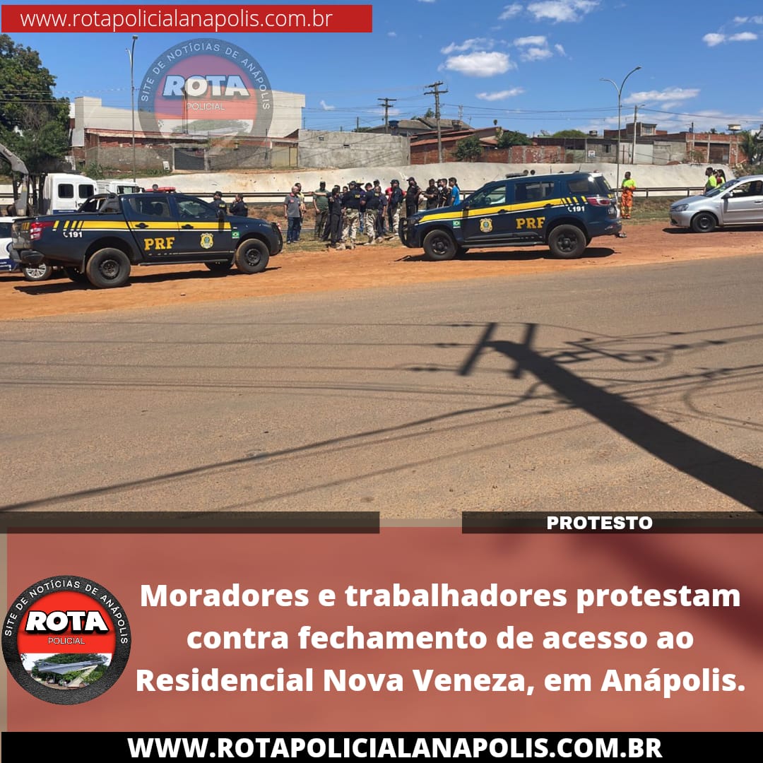 Moradores e trabalhadores protestam contra fechamento de acesso ao Residencial Nova Veneza, em Anápolis.