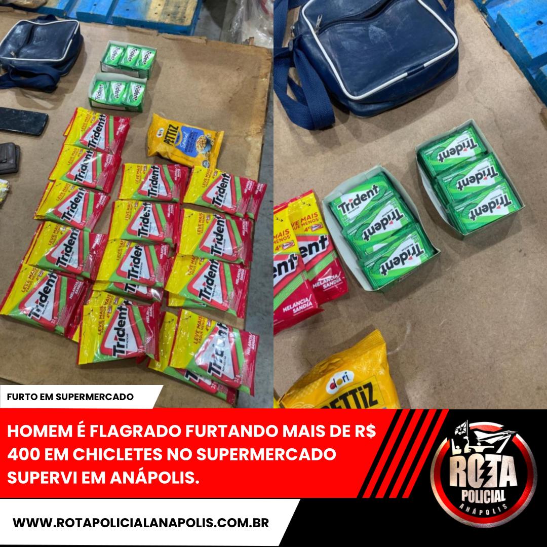 HOMEM É FLAGRADO FURTANDO MAIS DE R$ 400 EM CHICLETES NO SUPERMERCADO SUPERVI EM ANÁPOLIS.