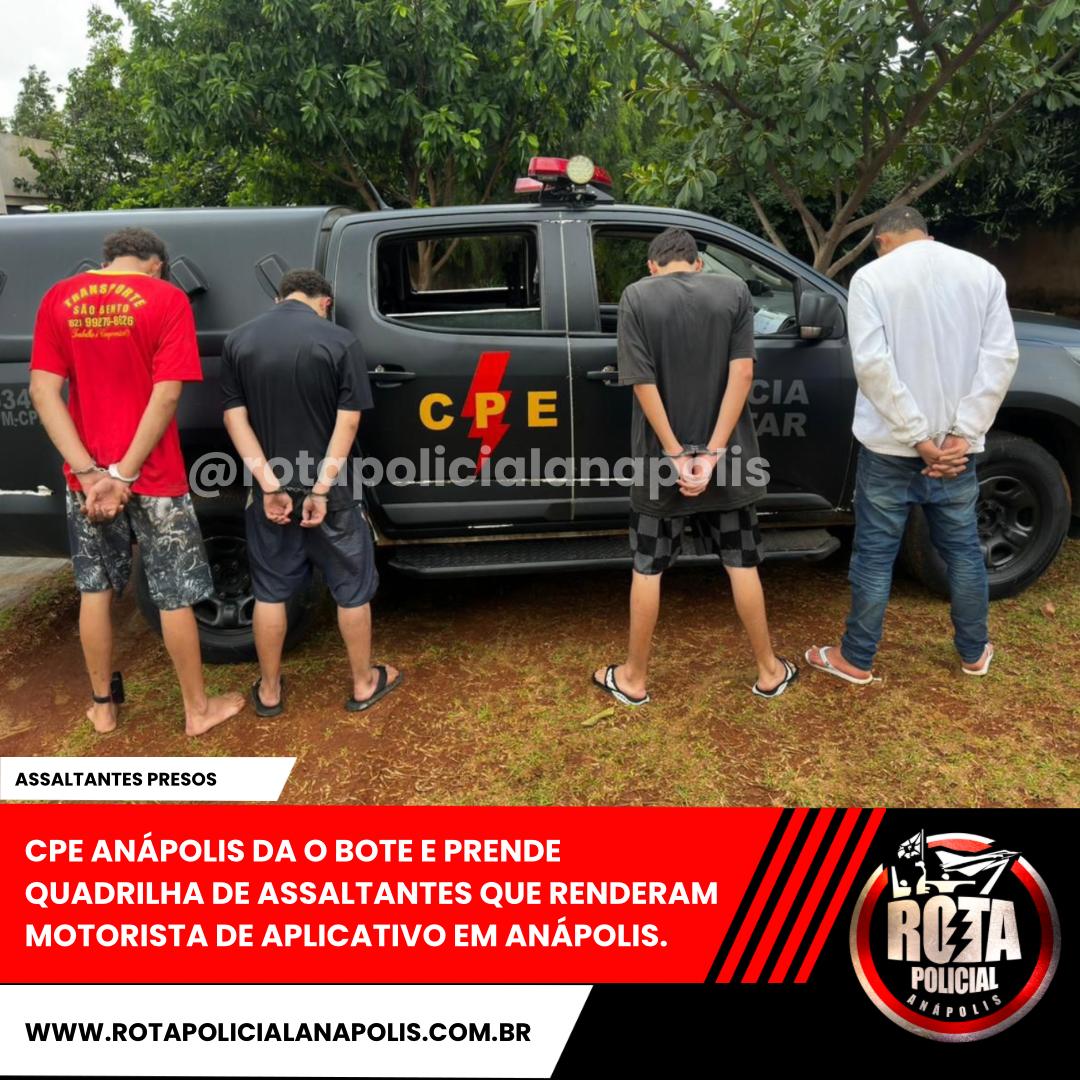 CPE ANÁPOLIS DA O BOTE E PRENDE QUADRILHA DE ASSALTANTES QUE RENDERAM MOTORISTA DE APLICATIVO EM ANÁPOLIS.