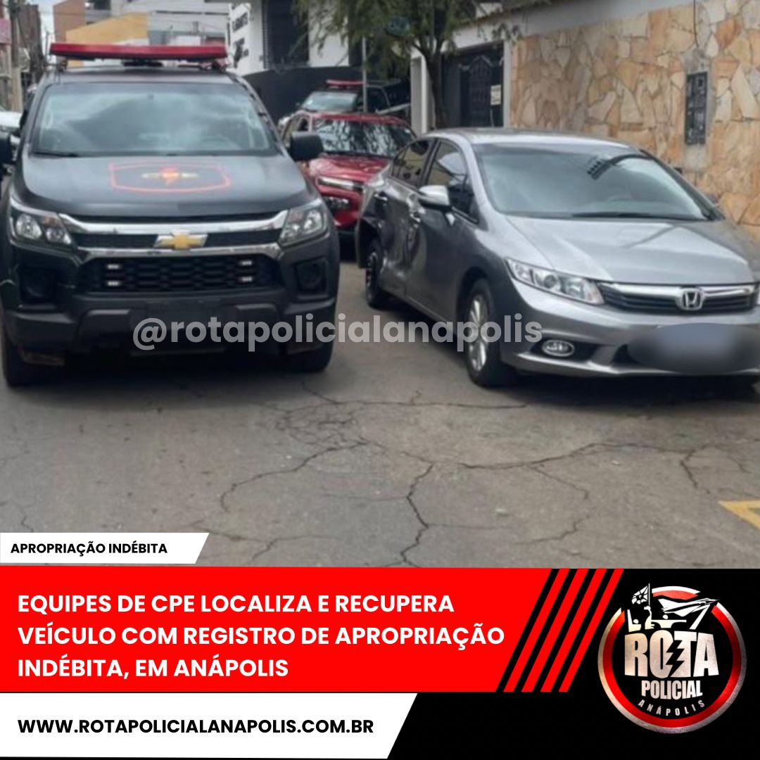 EQUIPES DE CPE LOCALIZA E RECUPERA VEÍCULO COM REGISTRO DE APROPRIAÇÃO INDÉBITA, EM ANÁPOLIS