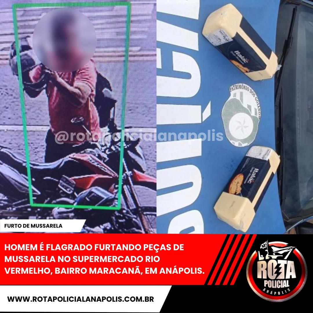 HOMEM É FLAGRADO FURTANDO PEÇAS DE MUSSARELA NO SUPERMERCADO RIO VERMELHO, BAIRRO MARACANÃ, EM ANÁPOLIS.