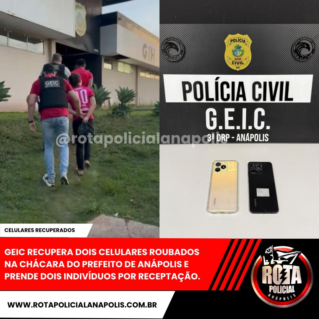 GEIC RECUPERA DOIS CELULARES ROUBADOS NA CHÁCARA DO PREFEITO DE ANÁPOLIS E PRENDE DOIS INDIVÍDUOS POR RECEPTAÇÃO.