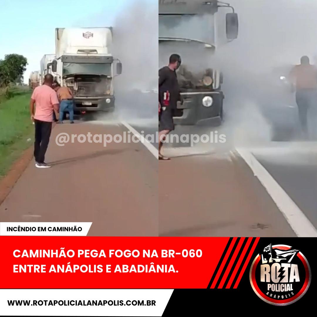 CAMINHÃO PEGA FOGO NA BR-060 ENTRE ANÁPOLIS E ABADIÂNIA.