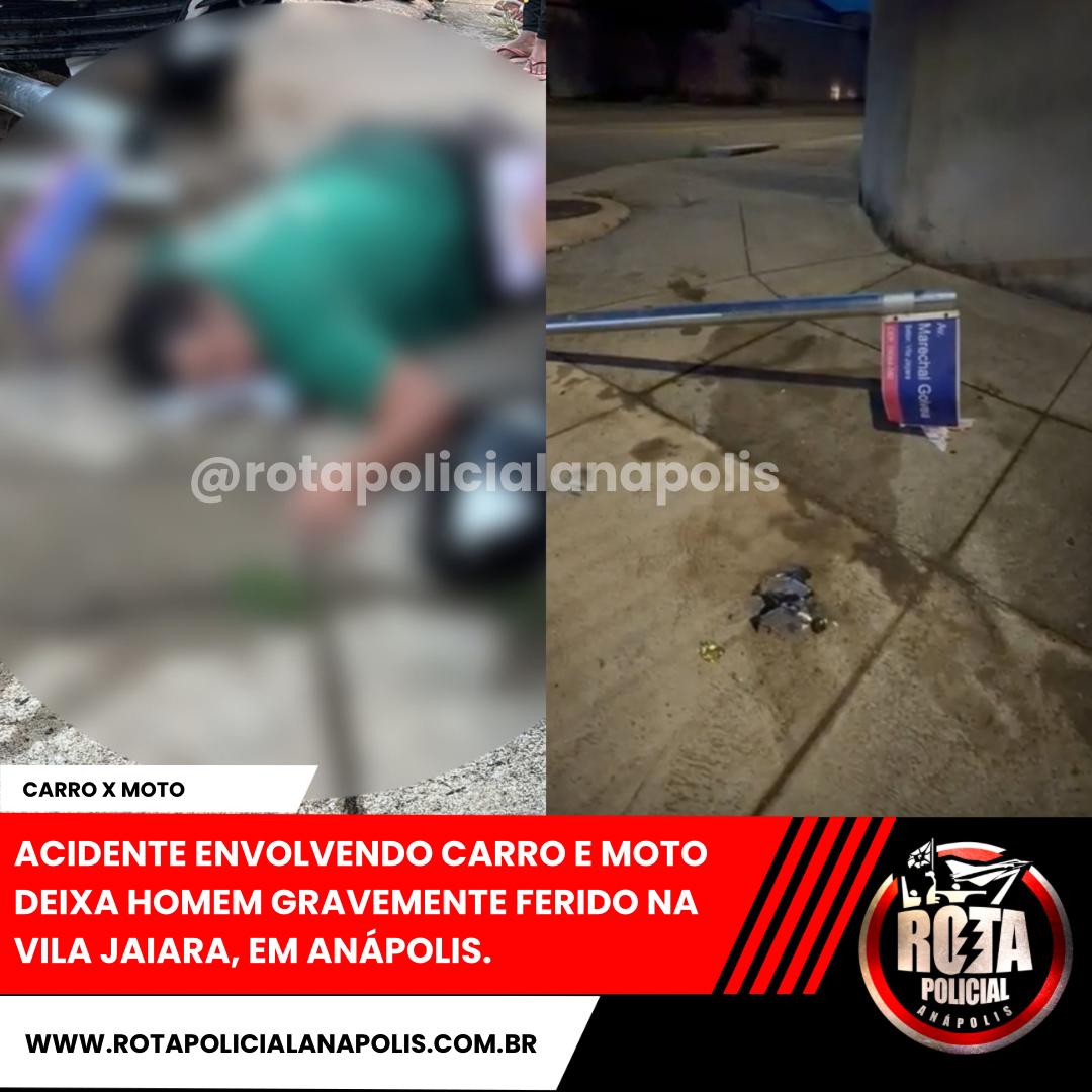 ACIDENTE ENVOLVENDO CARRO E MOTO DEIXA HOMEM GRAVEMENTE FERIDO NA VILA JAIARA, EM ANÁPOLIS.