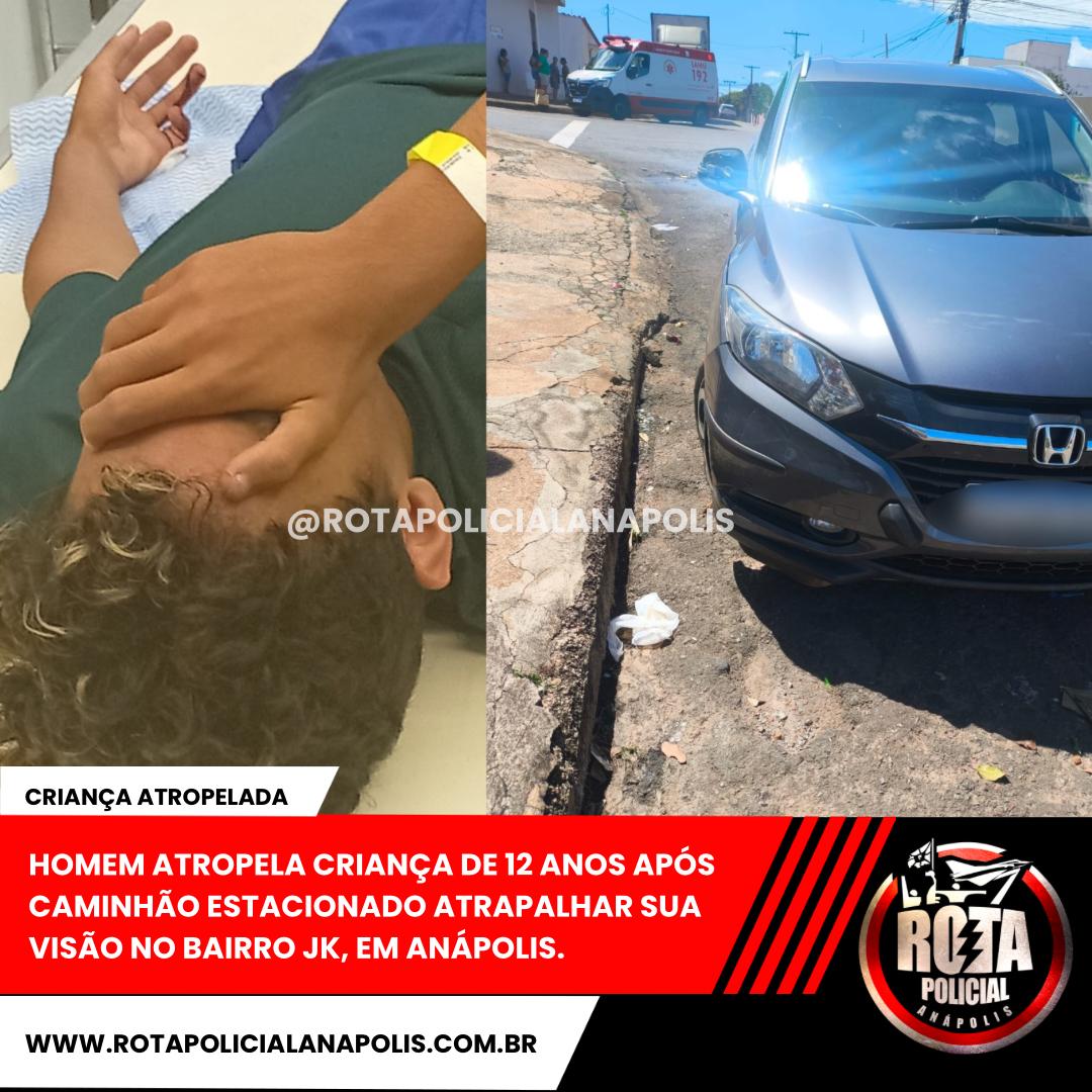 HOMEM ATROPELA CRIANÇA DE 12 ANOS APÓS CAMINHÃO ESTACIONADO ATRAPALHAR SUA VISÃO NO BAIRRO JK, EM ANÁPOLIS.