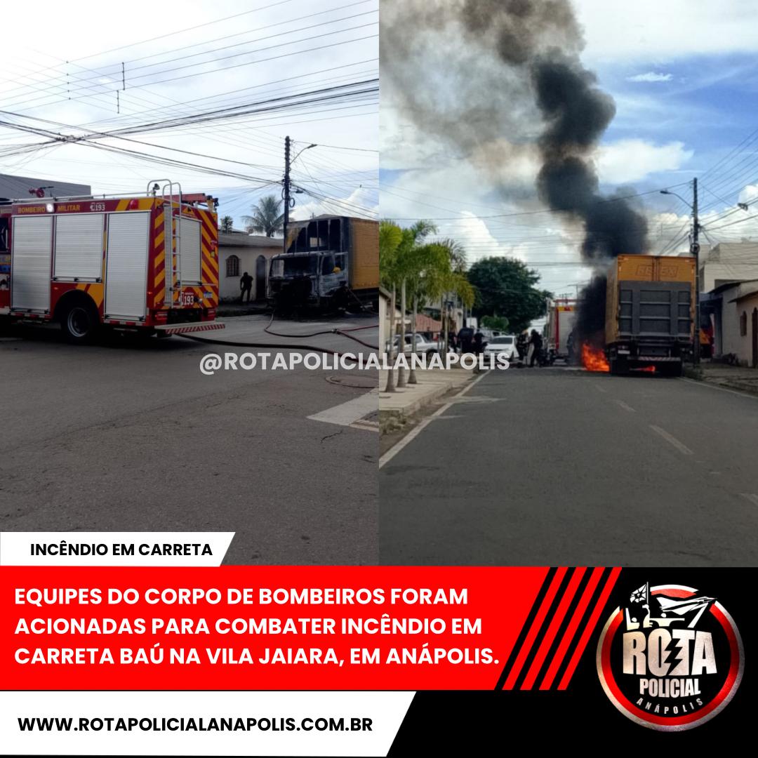 EQUIPES DO CORPO DE BOMBEIROS FORAM ACIONADOS PARA COMBATER INCÊNDIO EM CARRETA BAÚ NA VILA JAIARA, EM ANÁPOLIS.