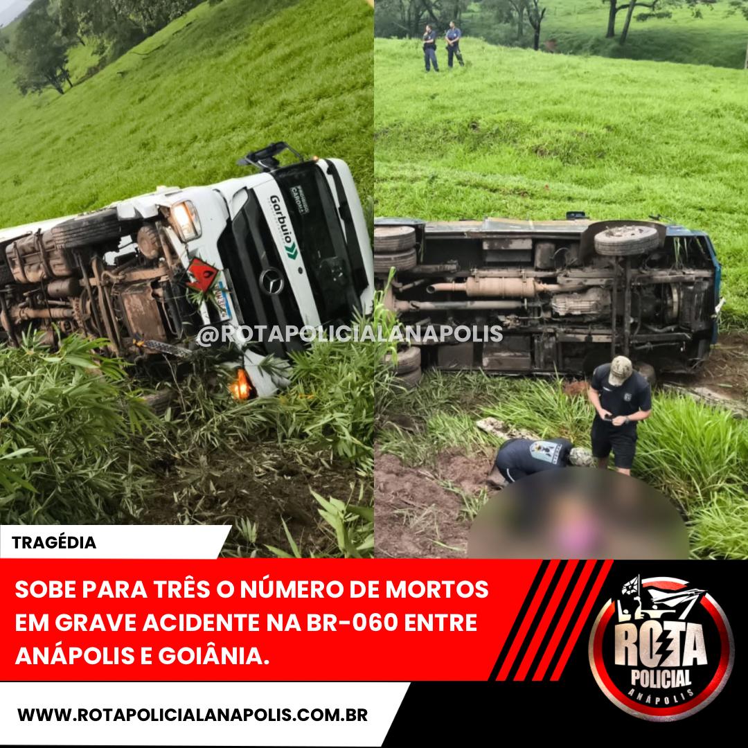 SOBE PARA TRÊS O NÚMERO DE MORTOS EM GRAVE ACIDENTE NA BR-060 ENTRE ANÁPOLIS E GOIÂNIA.