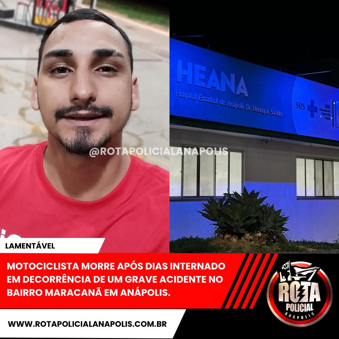 MOTOCICLISTA MORRE APÓS DIAS INTERNADO EM DECORRÊNCIA DE UM GRAVE ACIDENTE NO BAIRRO MARACANÃ EM ANÁPOLIS.