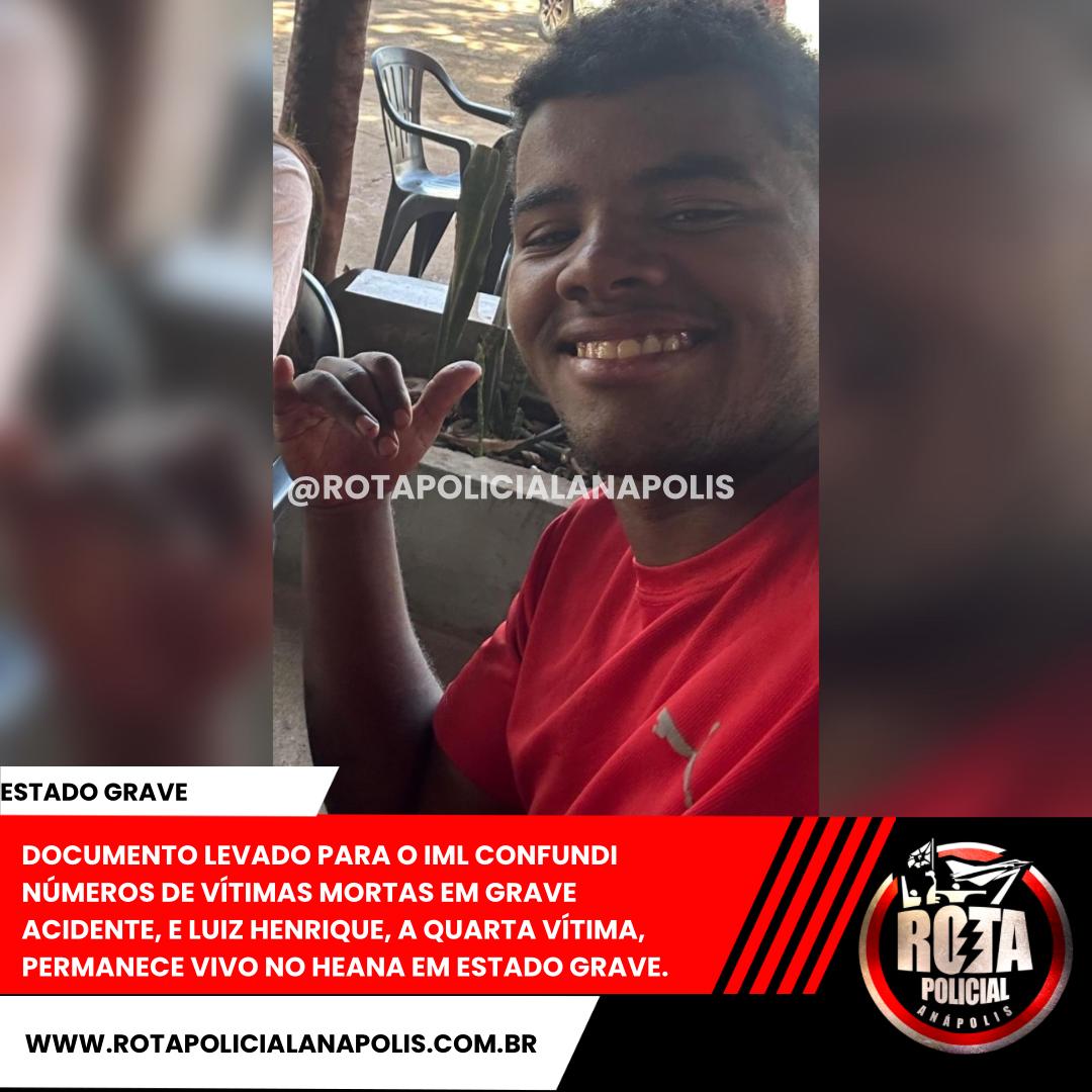 DOCUMENTO LEVADO PARA O IML CONFUNDI NÚMEROS DE VÍTIMAS MORTAS EM GRAVE ACIDENTE, E LUIZ HENRIQUE, A QUARTA VÍTIMA, PERMANECE VIVO NO HEANA EM ESTADO GRAVE.