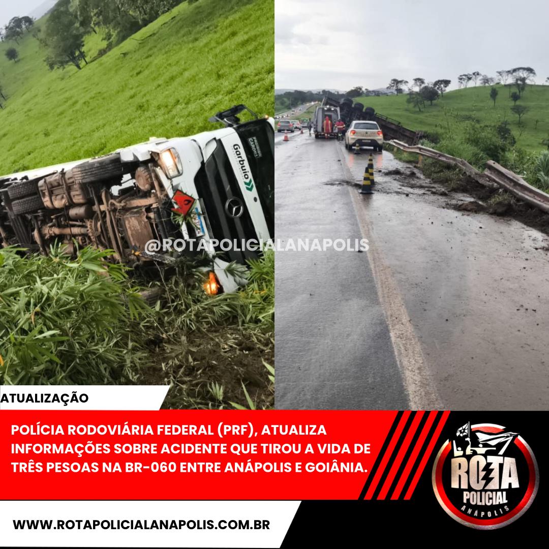 POLÍCIA RODOVIÁRIA FEDERAL (PRF), ATUALIZA INFORMAÇÕES SOBRE ACIDENTE QUE TIROU A VIDA DE TRÊS PESOAS NA BR-060 ENTRE ANÁPOLIS E GOIÂNIA.