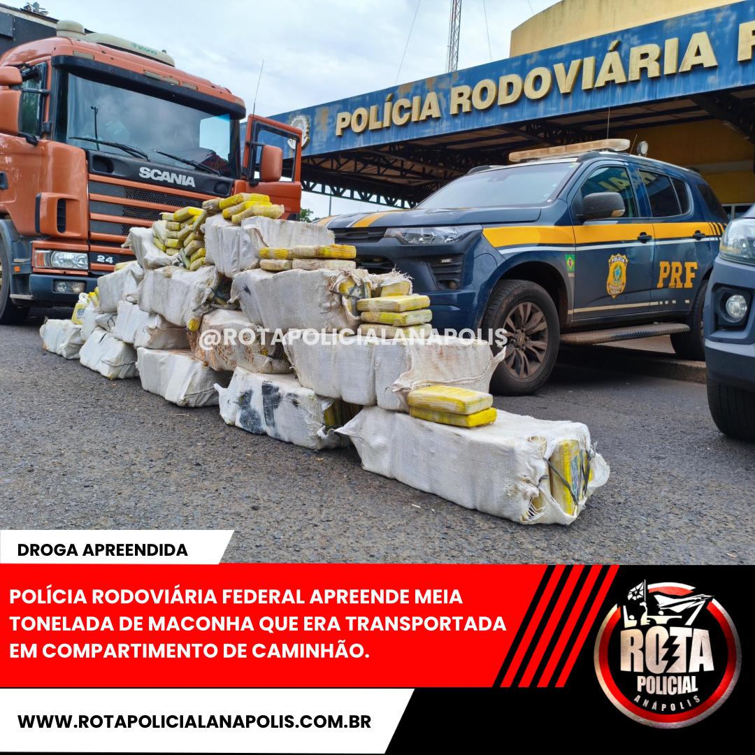 POLÍCIA RODOVIÁRIA FEDERAL APREENDE MEIA TONELADA DE MACONHA QUE ERA TRANSPORTADA EM COMPARTIMENTO DE CAMINHÃO.