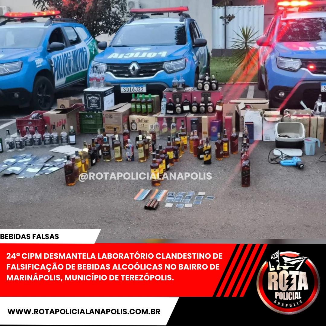 24ª CIPM DESMANTELA LABORATÓRIO CLANDESTINO DE FALSIFICAÇÃO DE BEBIDAS ALCOÓLICAS NO BAIRRO DE MARINÁPOLIS, MUNICÍPIO DE TEREZÓPOLIS.