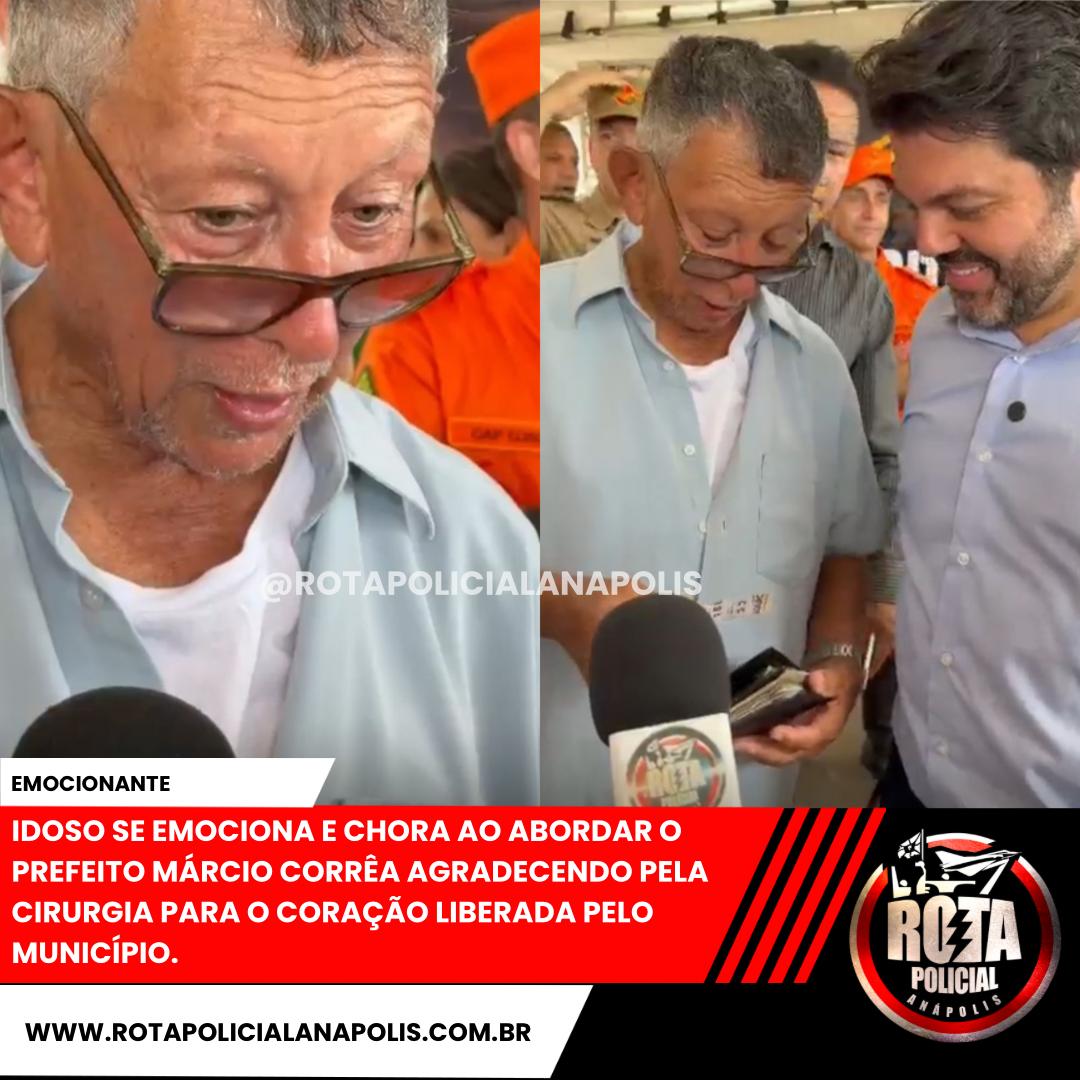 IDOSO SE EMOCIONA E CHORA AO ABORDAR O PREFEITO MÁRCIO CORRÊA AGRADECENDO PELA CIRURGIA PARA O CORAÇÃO LIBERADA PELO MUNICÍPIO.
