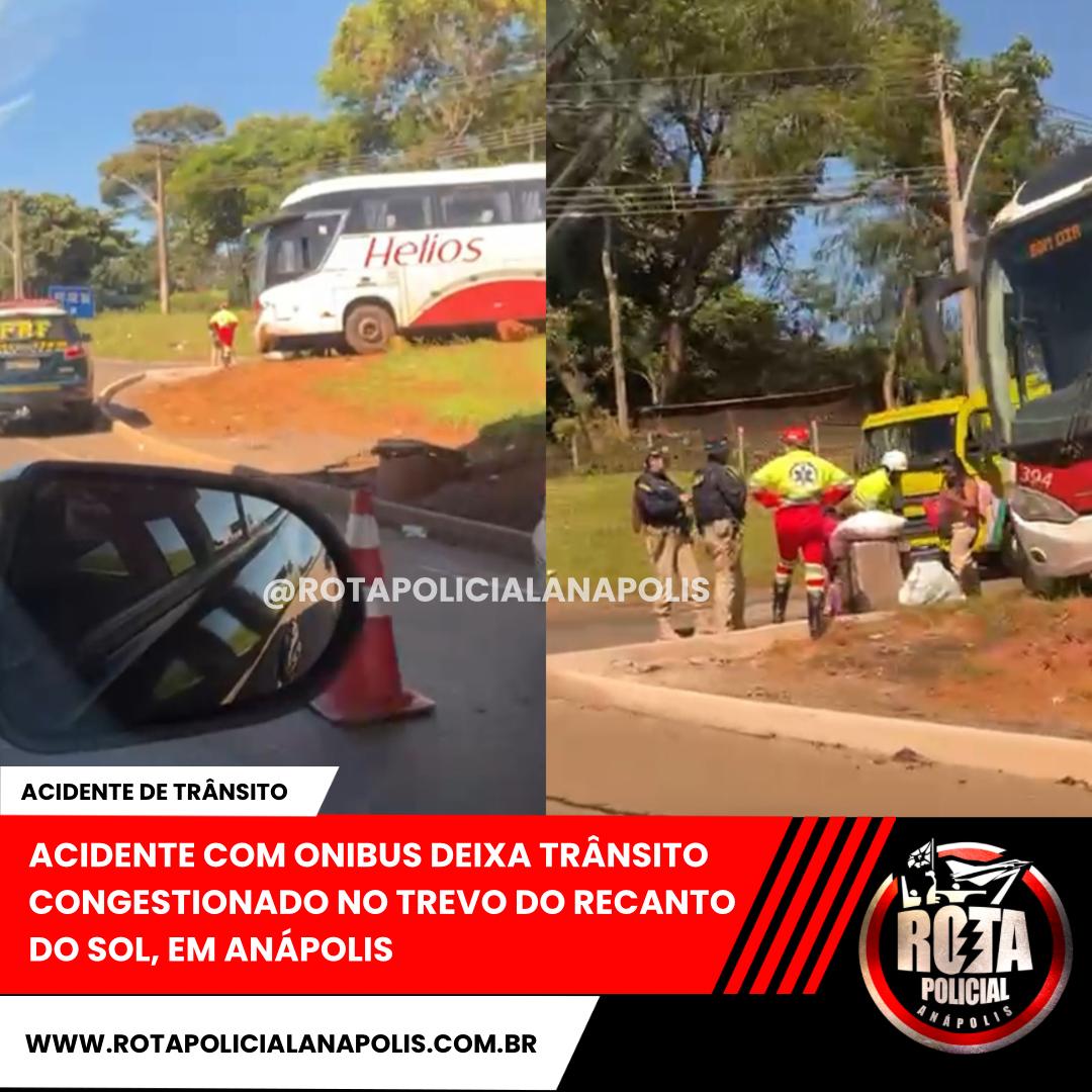 ACIDENTE COM ONIBUS DEIXA TRÂNSITO CONGESTIONADO NO TREVO DO RECANTO DO SOL, EM ANÁPOLIS