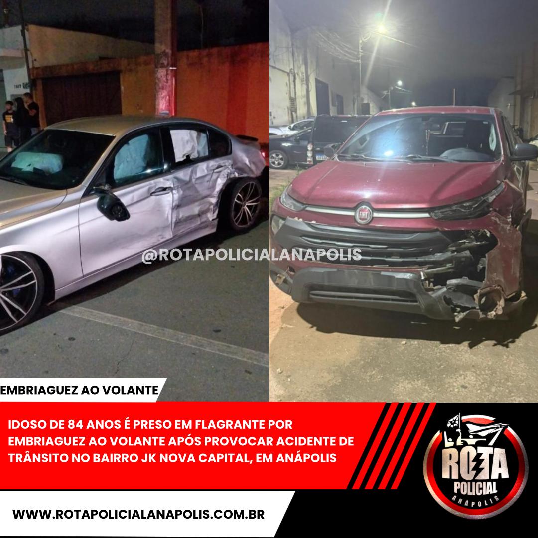 IDOSO DE 84 ANOS É PRESO EM FLAGRANTE POR EMBRIAGUEZ AO VOLANTE APÓS PROVOCAR ACIDENTE DE TRÂNSITO NO BAIRRO JK NOVA CAPITAL, EM ANÁPOLIS