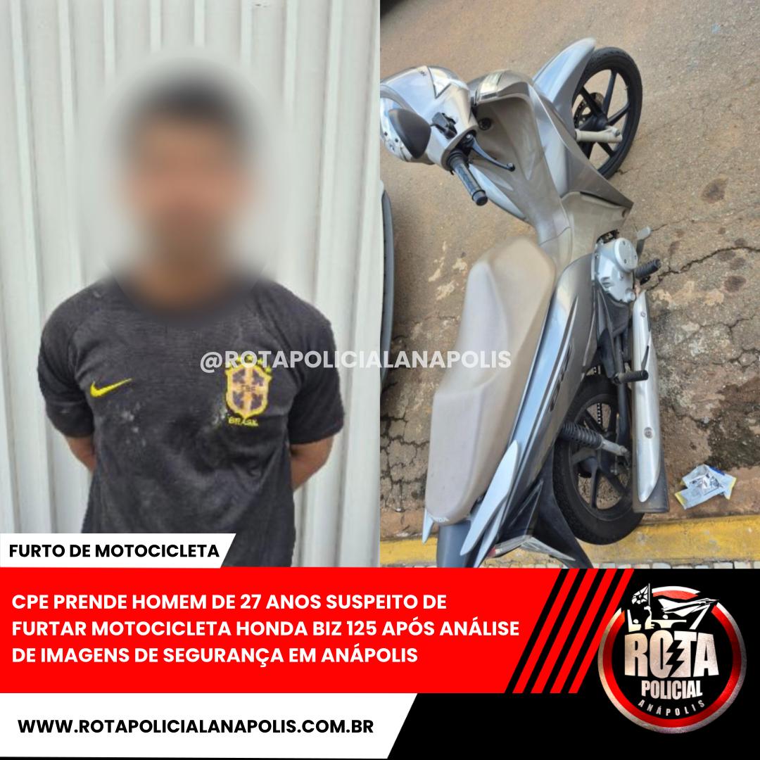 CPE PRENDE HOMEM DE 27 ANOS SUSPEITO DE FURTAR MOTOCICLETA HONDA BIZ 125 APÓS ANÁLISE DE IMAGENS DE SEGURANÇA EM ANÁPOLIS