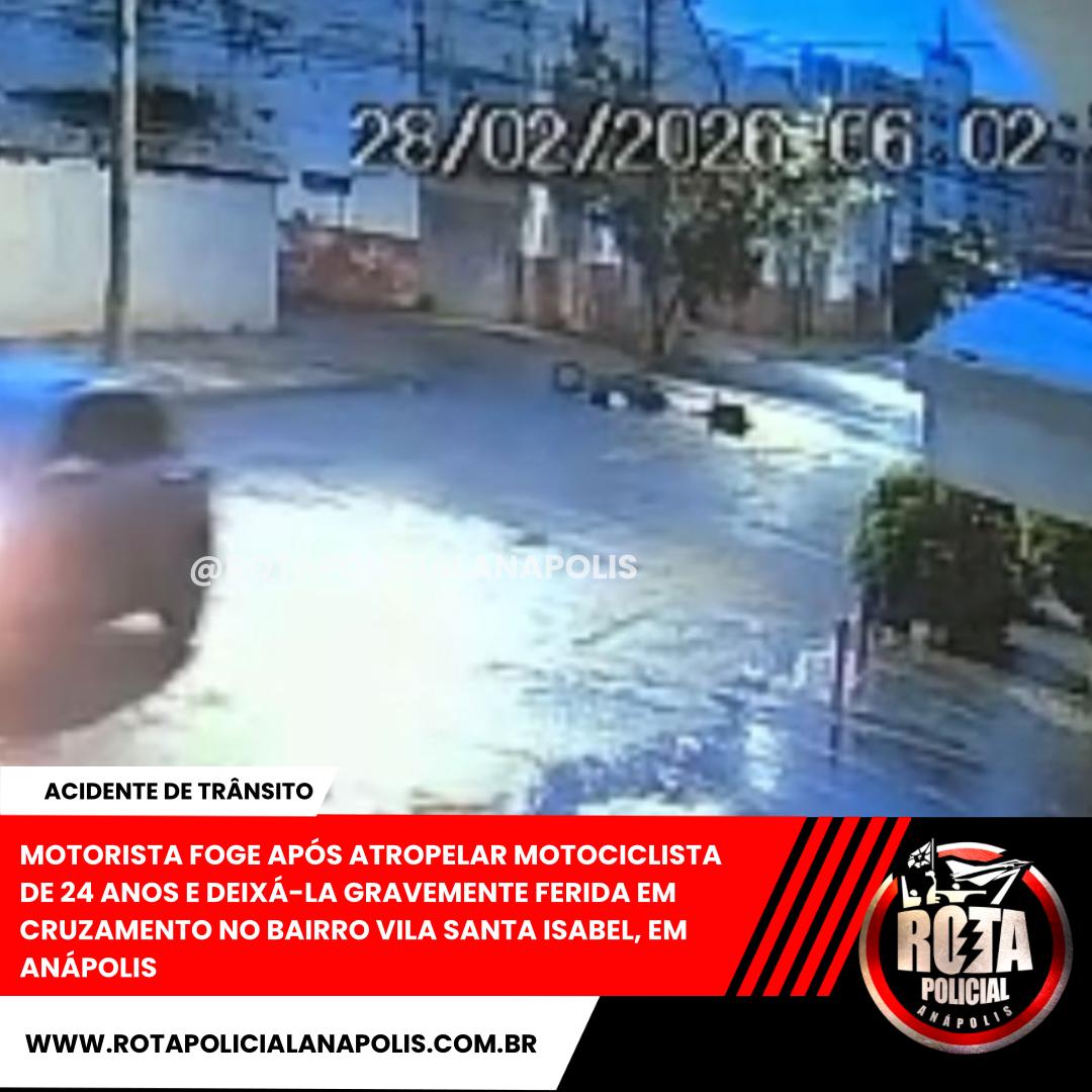 MOTORISTA FOGE APÓS ATROPELAR MOTOCICLISTA DE 24 ANOS E DEIXÁ-LA GRAVEMENTE FERIDA EM CRUZAMENTO NO BAIRRO VILA SANTA ISABEL, EM ANÁPOLIS