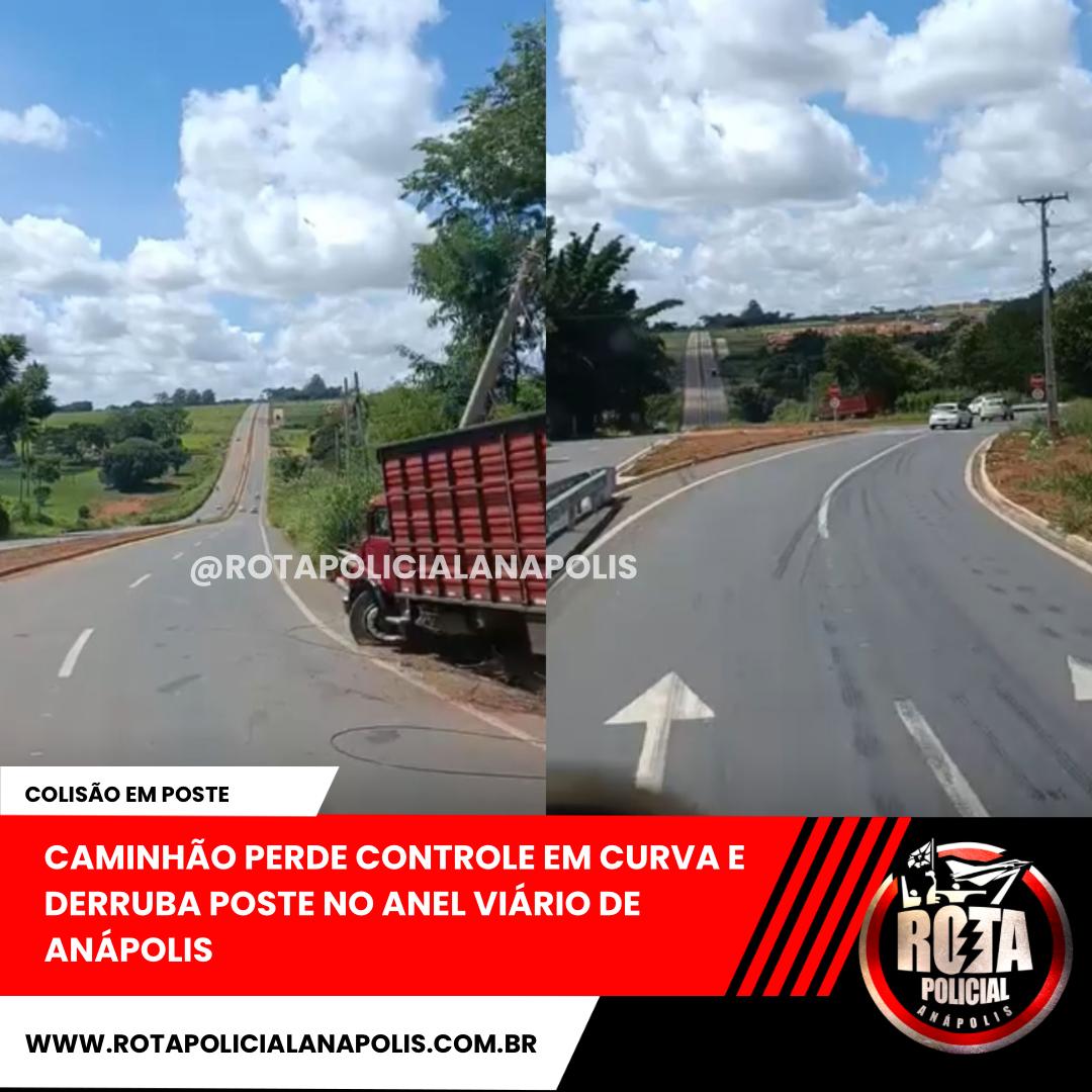 CAMINHÃO PERDE CONTROLE EM CURVA E DERRUBA POSTE NO ANEL VIÁRIO DE ANÁPOLIS