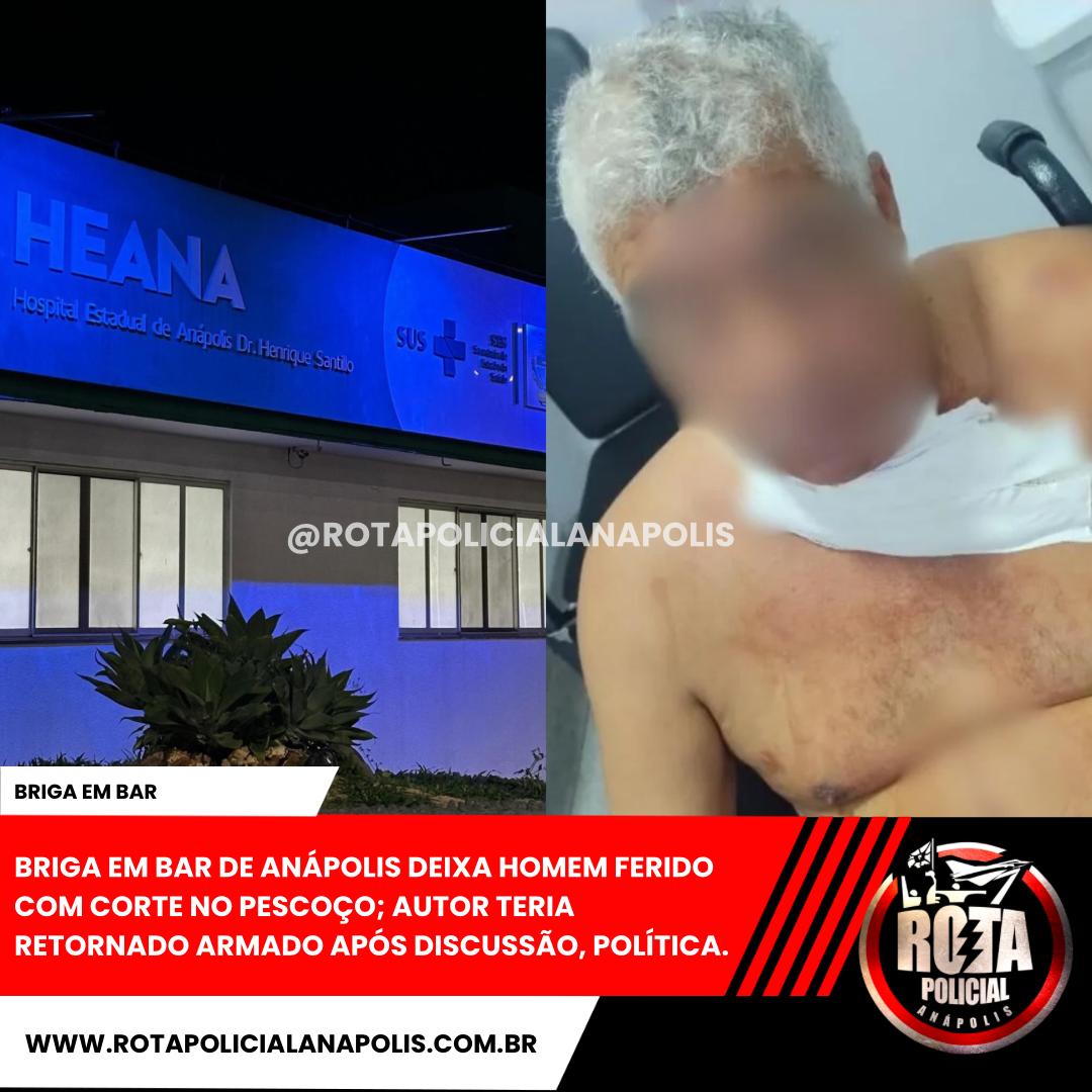 BRIGA EM BAR DE ANÁPOLIS DEIXA HOMEM FERIDO COM CORTE NO PESCOÇO; AUTOR TERIA RETORNADO ARMADO APÓS DISCUSSÃO, POLÍTICA.