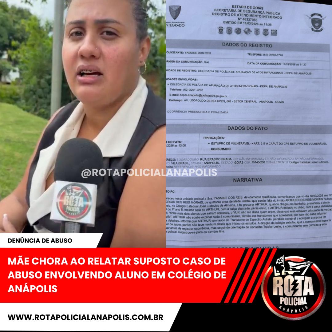 MÃE CHORA AO RELATAR SUPOSTO CASO DE ABUSO ENVOLVENDO ALUNO EM COLÉGIO DE ANÁPOLIS