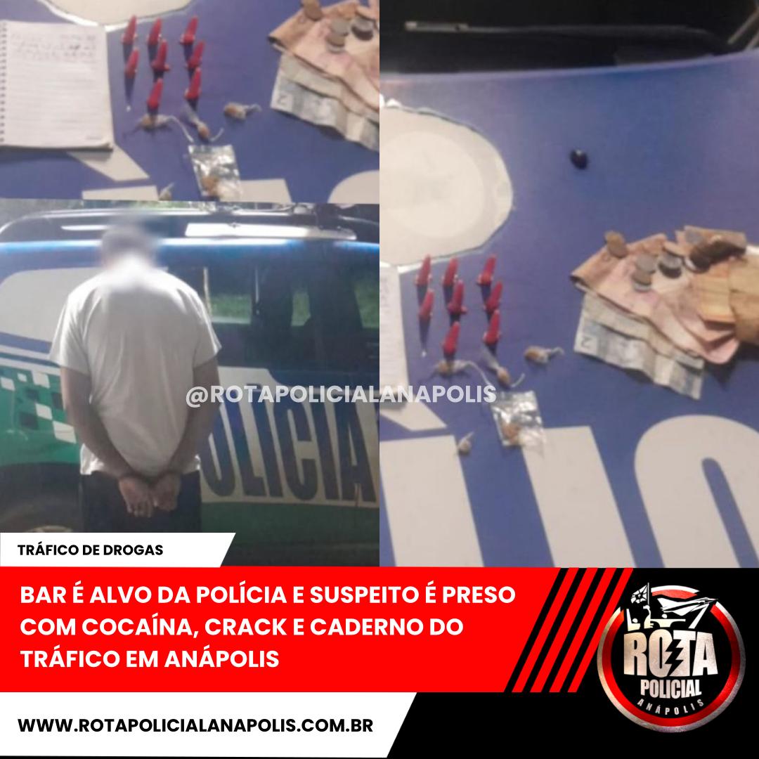 BAR É ALVO DA POLÍCIA E SUSPEITO É PRESO COM COCAÍNA, CRACK E CADERNO DO TRÁFICO EM ANÁPOLIS