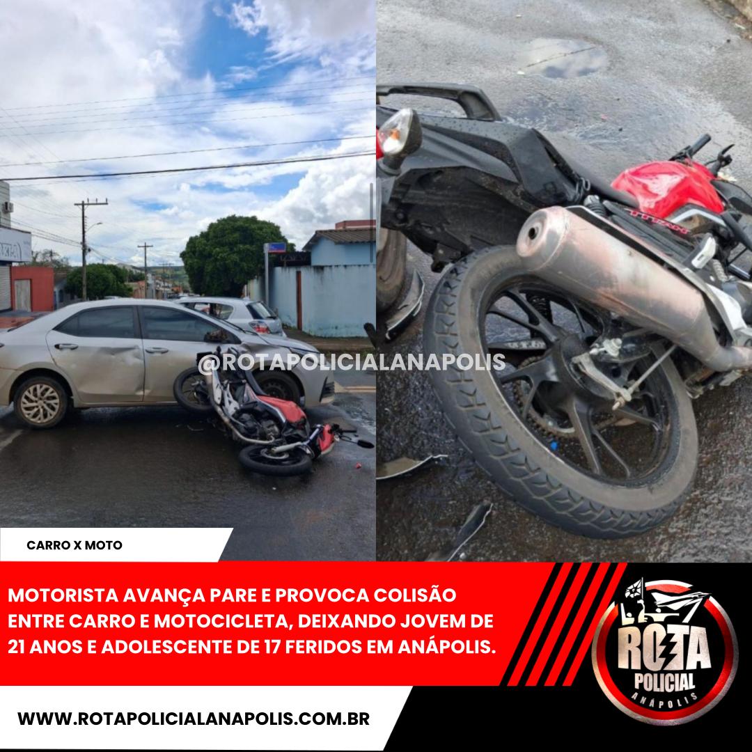 MOTORISTA AVANÇA PARE E PROVOCA COLISÃO ENTRE CARRO E MOTOCICLETA, DEIXANDO JOVEM DE 21 ANOS E ADOLESCENTE DE 17 FERIDOS EM ANÁPOLIS.