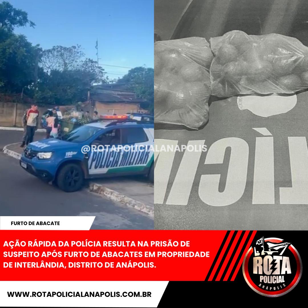 AÇÃO RÁPIDA DA POLÍCIA RESULTA NA PRISÃO DE SUSPEITO APÓS FURTO DE ABACATES EM PROPRIEDADE DE INTERLÂNDIA, DISTRITO DE ANÁPOLIS.