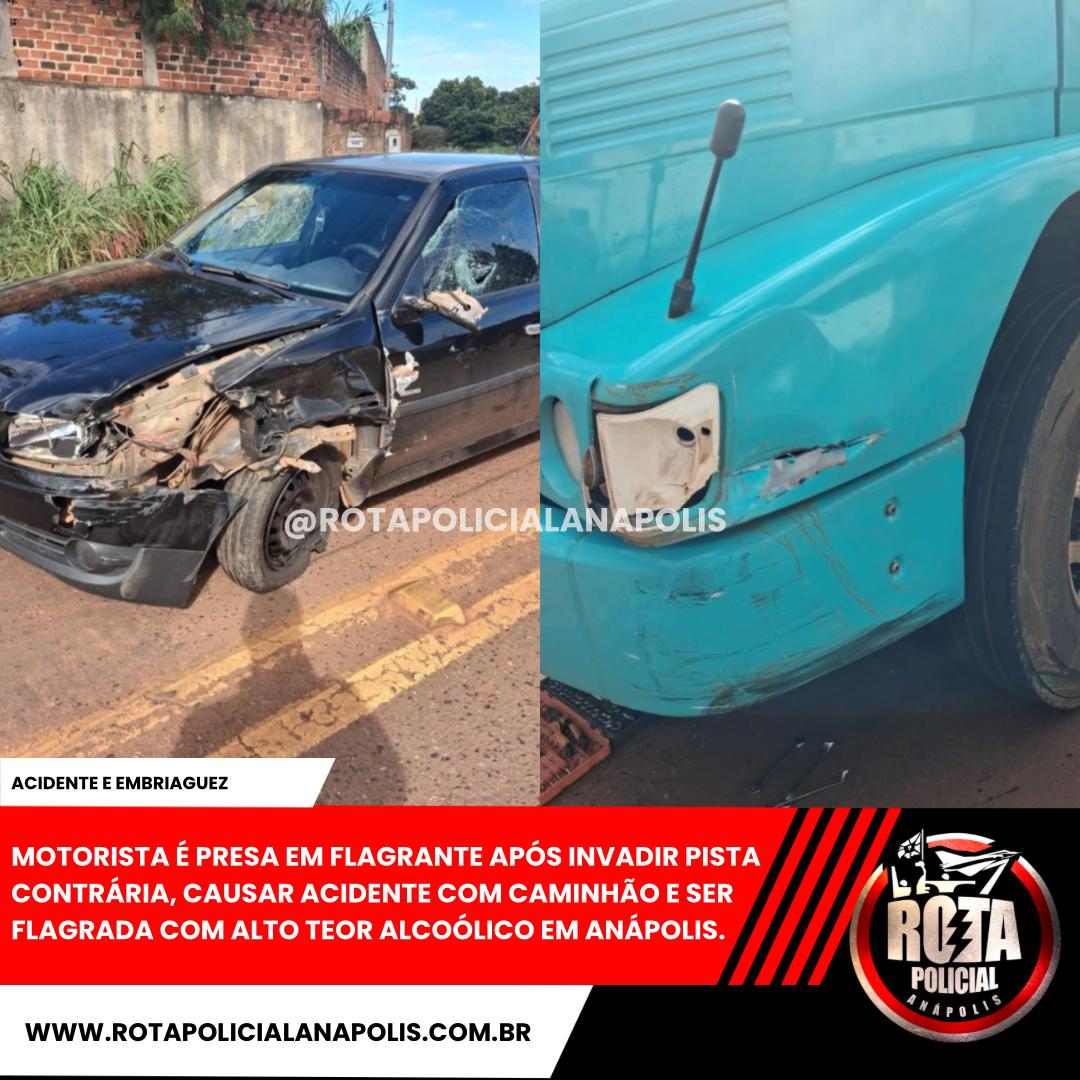 MOTORISTA É PRESA EM FLAGRANTE APÓS INVADIR PISTA CONTRÁRIA, CAUSAR ACIDENTE COM CAMINHÃO E SER FLAGRADA COM ALTO TEOR ALCOÓLICO EM ANÁPOLIS.