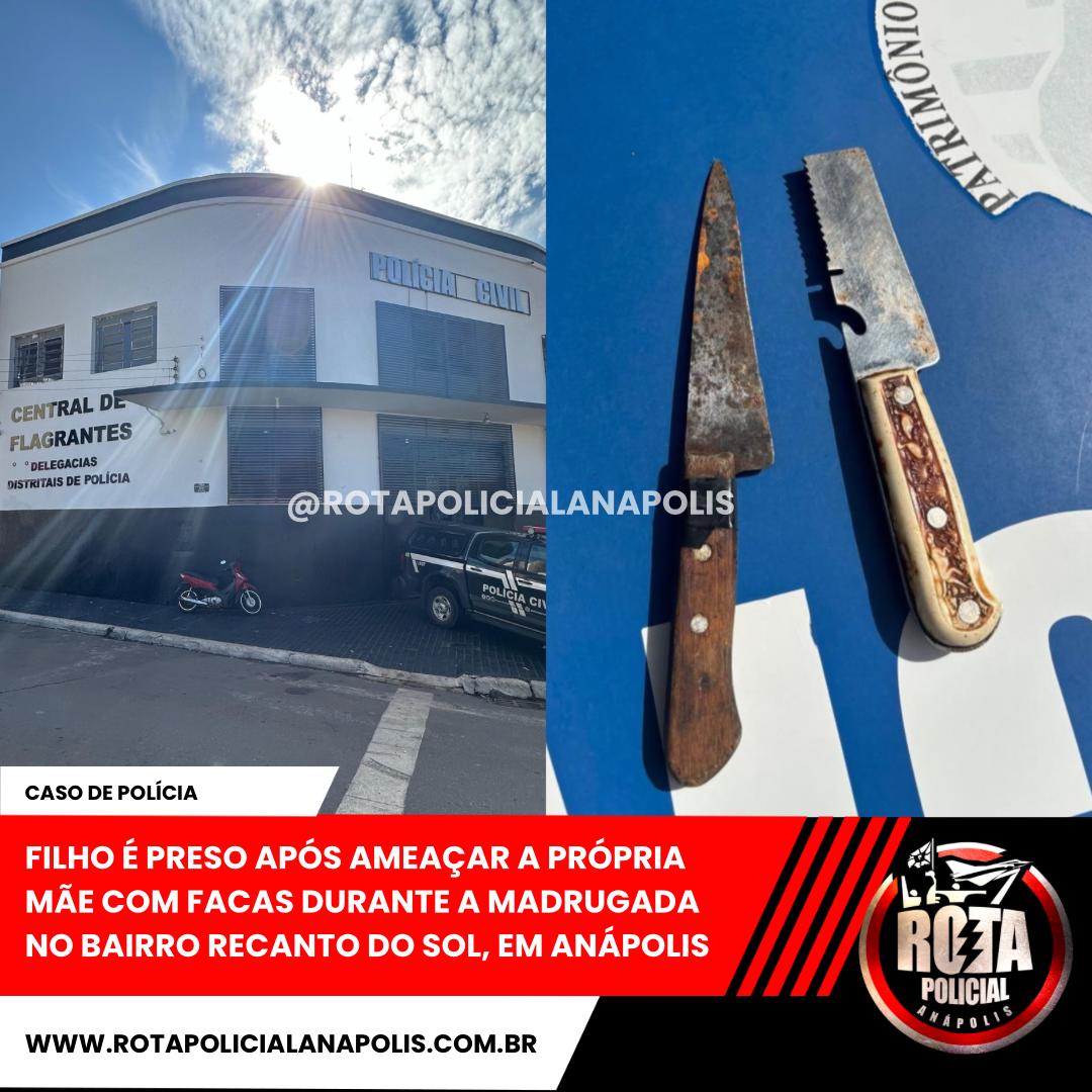 FILHO É PRESO APÓS AMEAÇAR A PRÓPRIA MÃE COM FACAS DURANTE A MADRUGADA NO BAIRRO RECANTO DO SOL, EM ANÁPOLIS