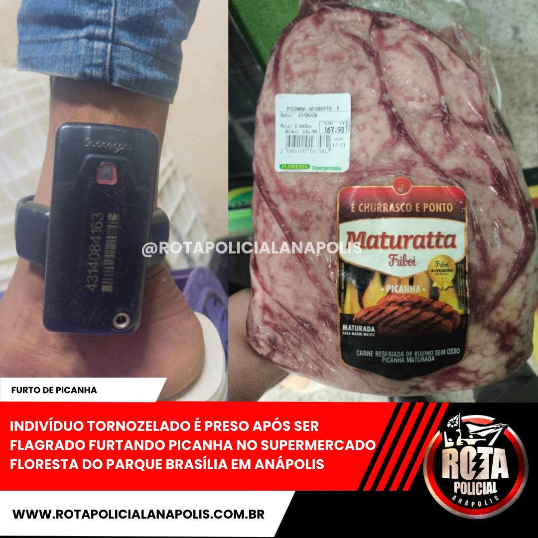 INDIVÍDUO TORNOZELADO É PRESO APÓS SER FLAGRADO FURTANDO PICANHA NO SUPERMERCADO FLORESTA DO PARQUE BRASÍLIA EM ANÁPOLIS
