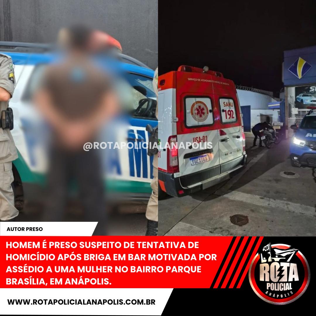 HOMEM É PRESO SUSPEITO DE TENTATIVA DE HOMICÍDIO APÓS BRIGA EM BAR MOTIVADA POR ASSÉDIO A UMA MULHER NO BAIRRO PARQUE BRASÍLIA, EM ANÁPOLIS.