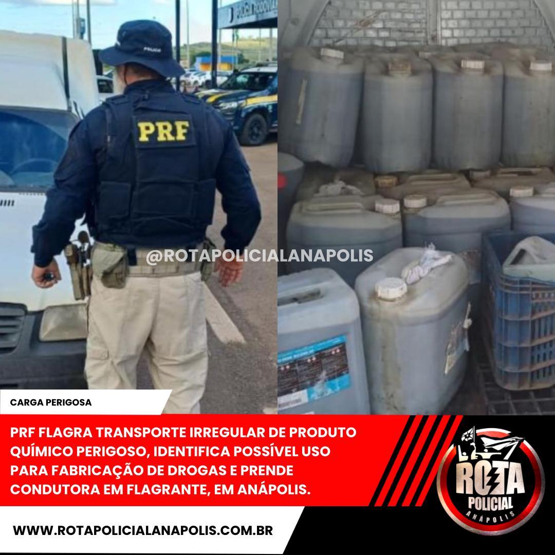 PRF FLAGRA TRANSPORTE IRREGULAR DE PRODUTO QUÍMICO PERIGOSO, IDENTIFICA POSSÍVEL USO PARA FABRICAÇÃO DE DROGAS E PRENDE CONDUTORA EM FLAGRANTE, EM ANÁPOLIS.