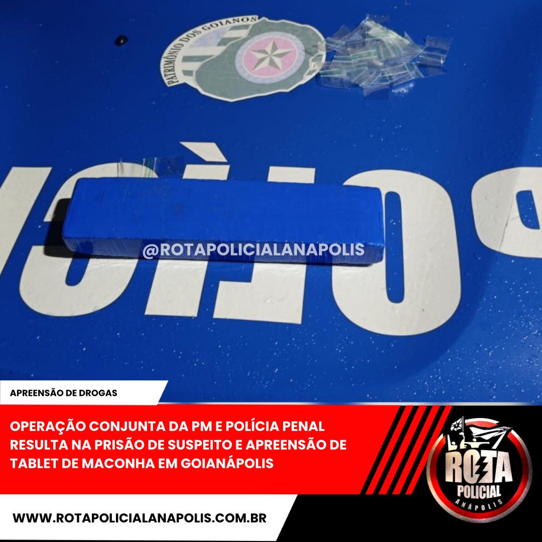 OPERAÇÃO CONJUNTA DA PM E POLÍCIA PENAL RESULTA NA PRISÃO DE SUSPEITO E APREENSÃO DE TABLET DE MACONHA EM GOIANÁPOLIS