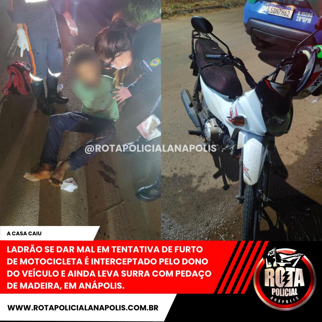 JOVEM EM MOTOCICLETA SEM PLACA TENTA ESCAPAR DE ABORDAGEM, QUASE ATINGE POLICIAL E ACABA DETIDO APÓS QUEDA NA VILA JAIARA, EM ANÁPOLIS.