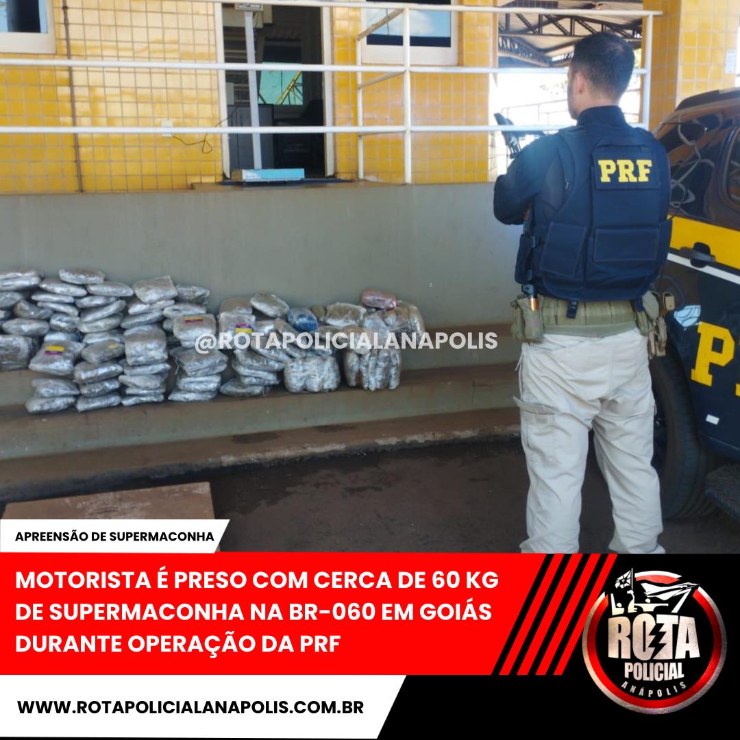 MOTORISTA É PRESO COM CERCA DE 60 KG DE SUPERMACONHA NA BR-060 EM GOIÁS DURANTE OPERAÇÃO DA PRF