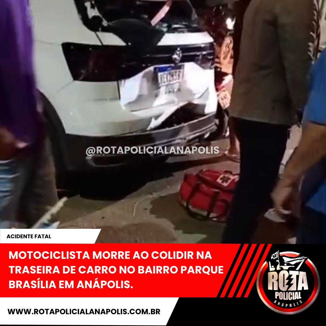 MOTOCICLISTA MORRE AO COLIDIR NA TRASEIRA DE CARRO NO BAIRRO PARQUE BRASÍLIA EM ANÁPOLIS.