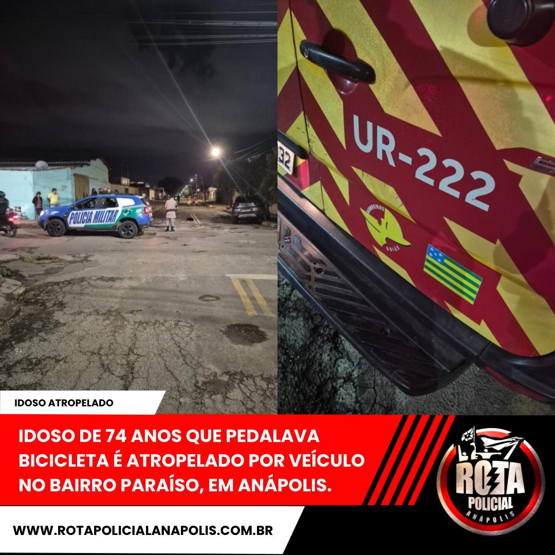 Um idoso de 74 anos foi atropelado por um carro de passeio no momento em que ele pedalava sua bicicleta na noite deste sábado (22), na Rua Boa Esperança, no Bairro Paraíso, em Anápolis.
