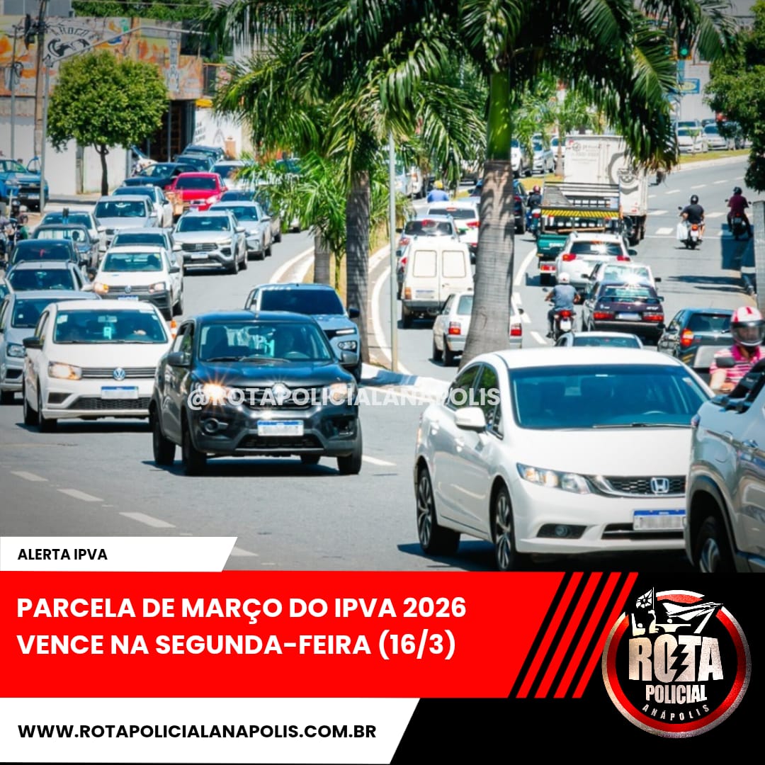 A Secretaria da Economia alerta os proprietários de veículos licenciados em Goiás para o vencimento da terceira parcela do Imposto sobre a Propriedade de Veículos Automotores (IPVA) 2026, na segunda-feira (16/3). A data de pagamento é a mesma para todos os finais de placa.