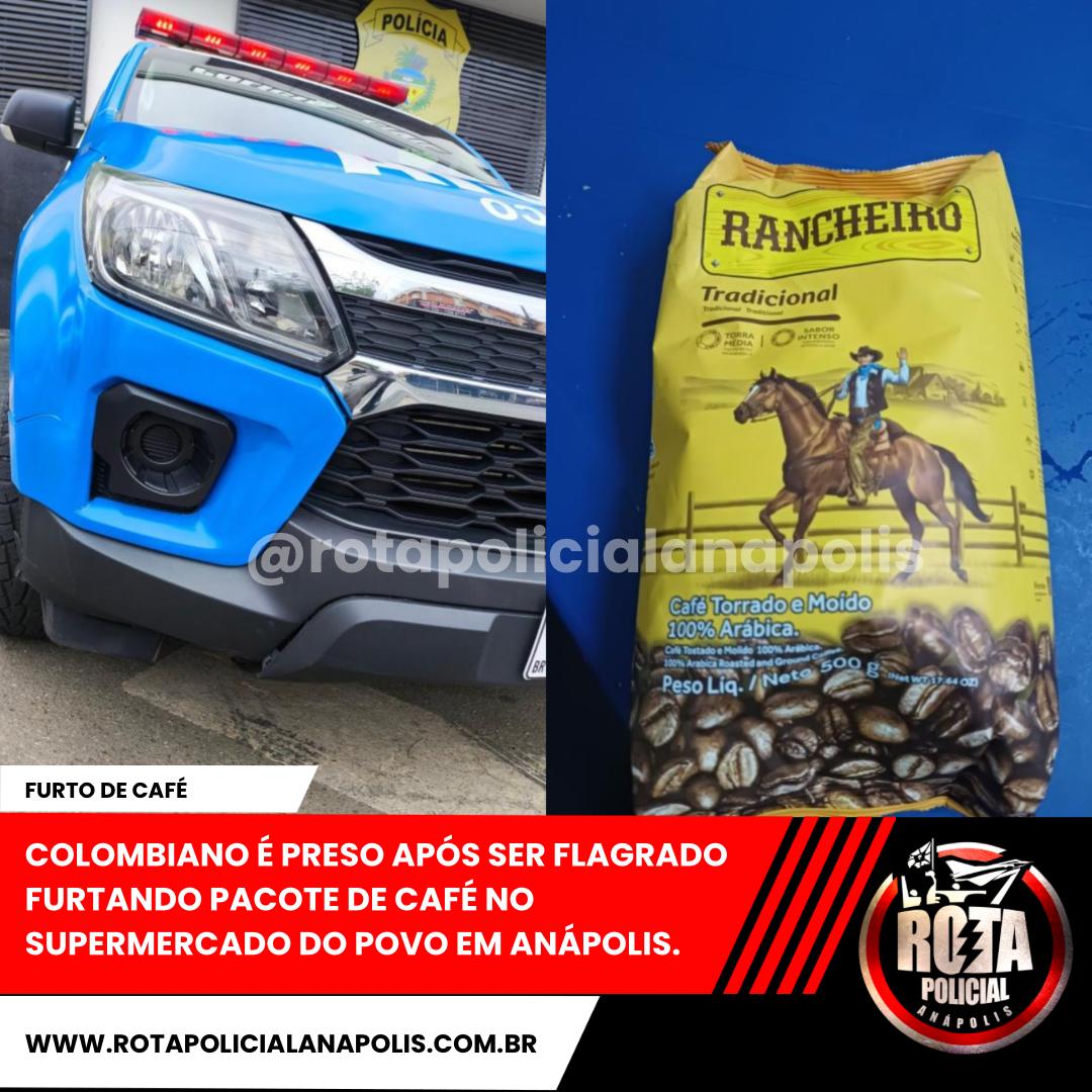 Um colombiano de 38 anos foi preso em flagrante após ser filmado por câmera de segurança furtando um pacote de café da marca Rancheiro na tarde desta segunda-feira (08) no supermercado do Povo, localizado na Avenida João Florentino, no bairro Parque Residencial das Flores, em Anápolis.