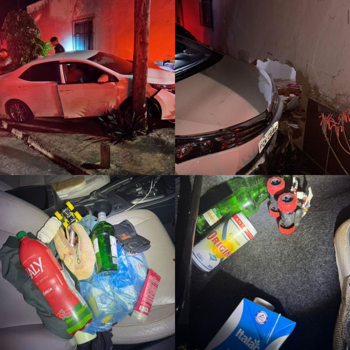 A perseguição seguiu até o bairro Bandeiras, onde o condutor perdeu o controle da direção e colidiu contra o muro de um imóvel na Rua Jonas Duarte. Após o impacto, ele foi encontrado sentado na calçada, com ferimento no nariz, e recebeu voz de prisão.