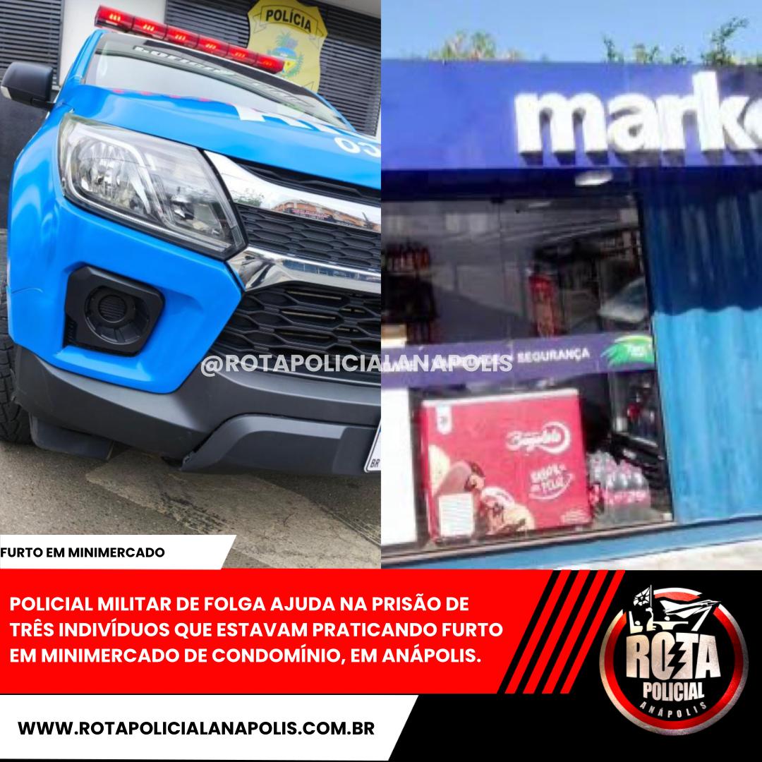 Um policial militar de folga que mora no condomínio Tropical Parque, localizado na Vila Formosa, ajudou na identificação e prisão de três indivíduos que estavam praticando furto no minimercado que fica dentro do condomínio na manhã deste domingo (21), em Anápolis.