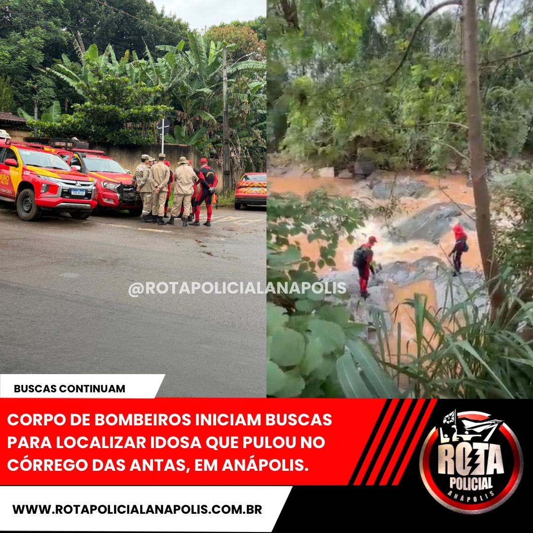Equipes do Corpo de Bombeiros de Anápolis iniciam na manhã desta quarta-feira (04), as buscas para localizar a idosa Olinda Da Silva Leite que pulou dentro do Córrego das Antas na tarde de ontem.