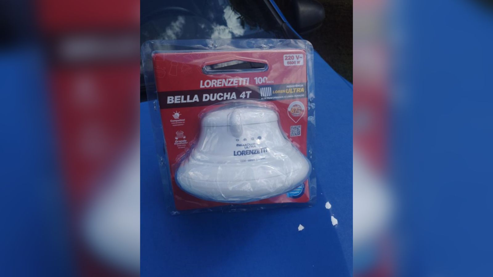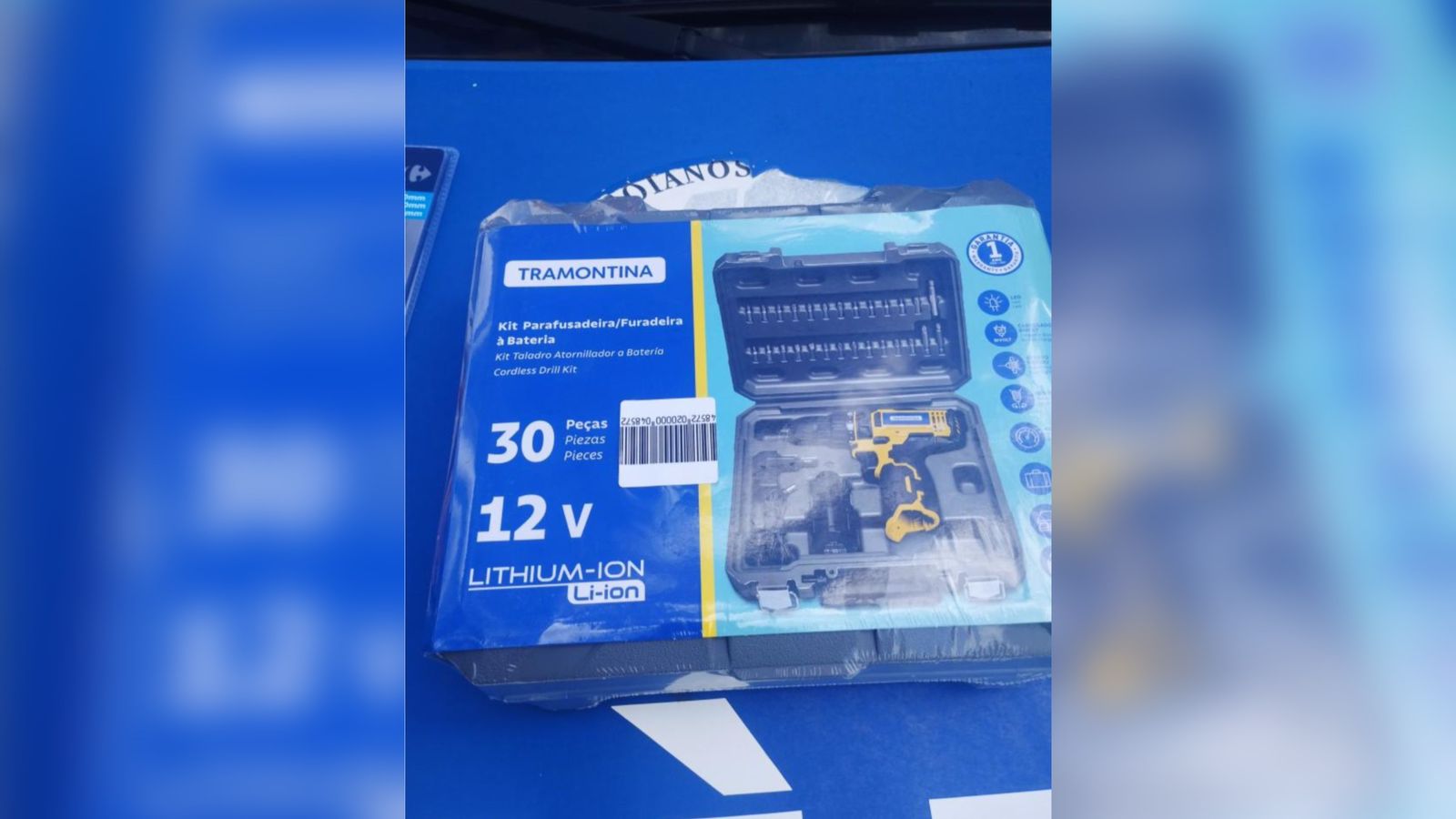 Entre os produtos subtraídos estavam um kit de parafusadeira da marca Tramontina, um kit de alicates e um chuveiro elétrico, totalizando R$ 609,79.