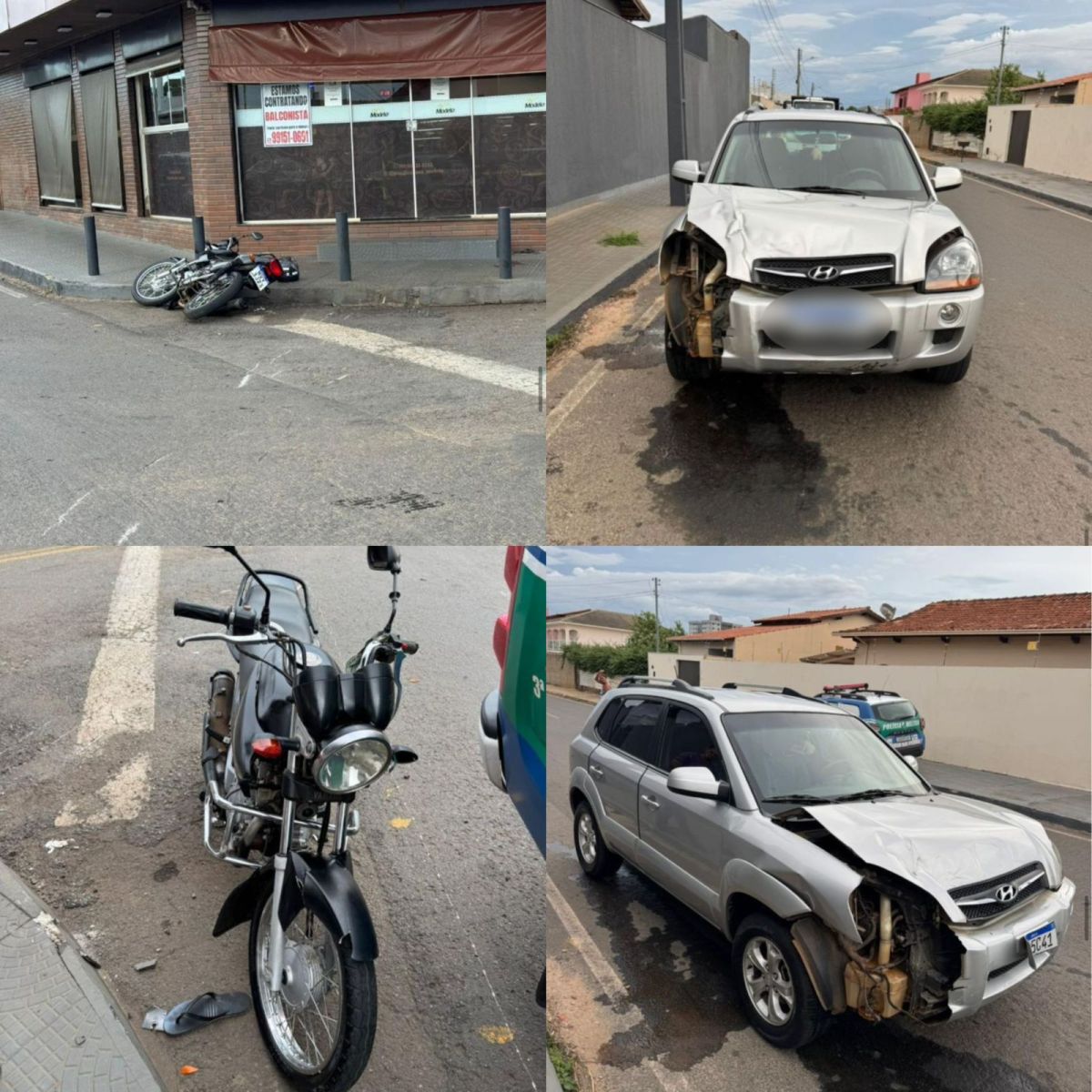 Um acidente de trânsito envolvendo um carro e uma motocicleta deixou duas pessoas feridas na tarde deste sábado (08), na Rua Dinamarca, no Bairro Jardim Bandeirantes, em Anápolis.
