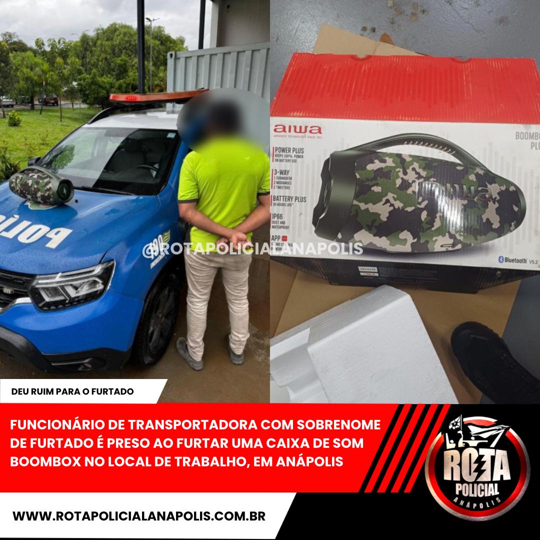 Um homem de 28 anos, que por coincidência tem o sobrenome “Furtado”, foi preso pela Polícia Militar ao ser flagrado furtando uma caixa de som boombox avaliada em R$ 1.185, na tarde desta quinta-feira (15), em uma transportadora localizada na Rua Santana das Antas, no Bairro Polocentro, em Anápolis.