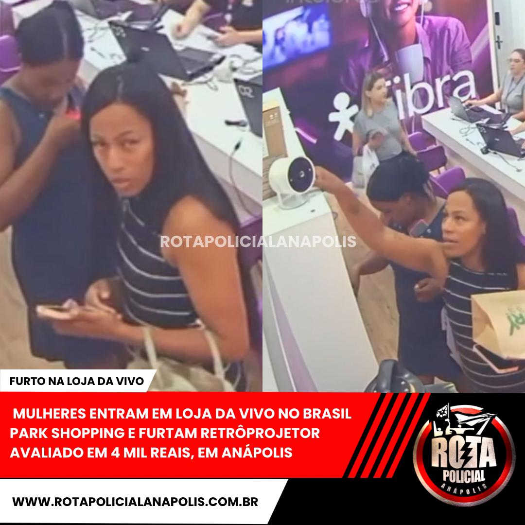 Imagens de câmera de segurança registraram o momento em que duas mulheres entraram na loja da Vivo e furtaram um aparelho retroprojetor avaliado em cerca de R$ 4 mil na tarde desta quinta-feira (13), no Brasil Park Shopping, em Anápolis.