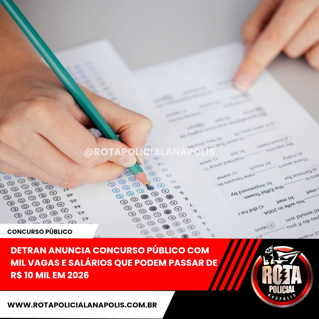 O Departamento Estadual de Trânsito (Detran) iniciou 2026 com a confirmação de um novo concurso público de grande porte, que prevê a oferta de 1.000 vagas para cargos de nível médio e superior. As remunerações iniciais variam de acordo com a função e, somadas aos benefícios e progressões previstas em lei, podem ultrapassar R$ 10 mil.