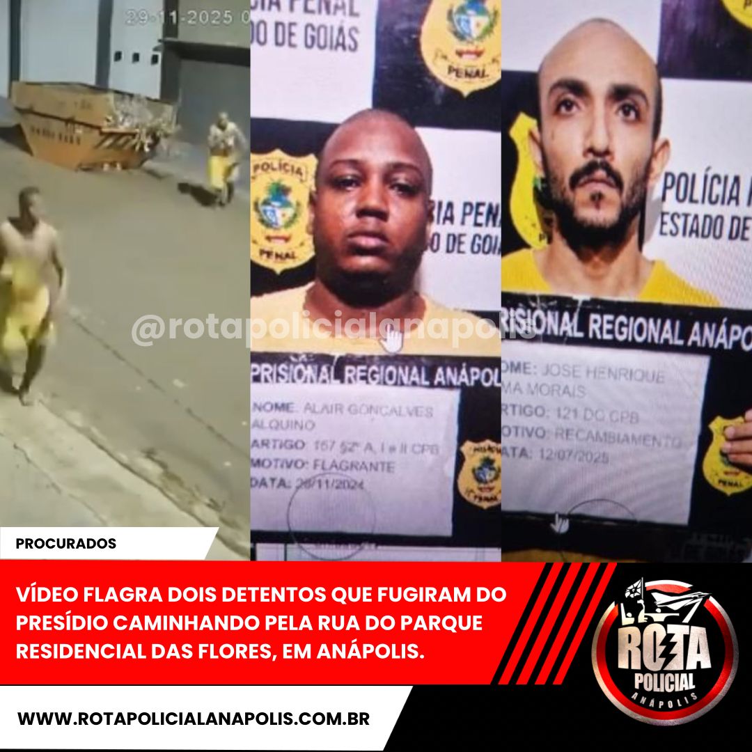 VÍDEO FLAGRA DOIS DETENTOS QUE FUGIRAM DO PRESÍDIO CAMINHANDO PELA RUA DO PARQUE RESIDENCIAL DAS FLORES, EM ANÁPOLIS.